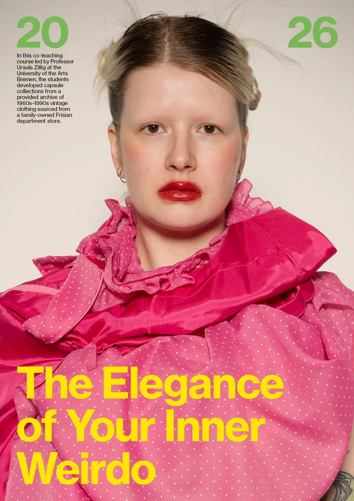 In this co-teaching course led by Professor Ursula Zillig at the University of the Arts Bremen, the students developed capsule collections from a provided archive of 1960s–1990s vintage clothing sourced from a family-owned Frisian department store.